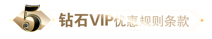 会员达到晋级条件后,即可晋升为钻石VIP1,成功晋级后,总有效投注开始累计计算,达到指定标准,即可晋升对应的钻石等级,【钻石等级】将于每周二23:00前自动更新。